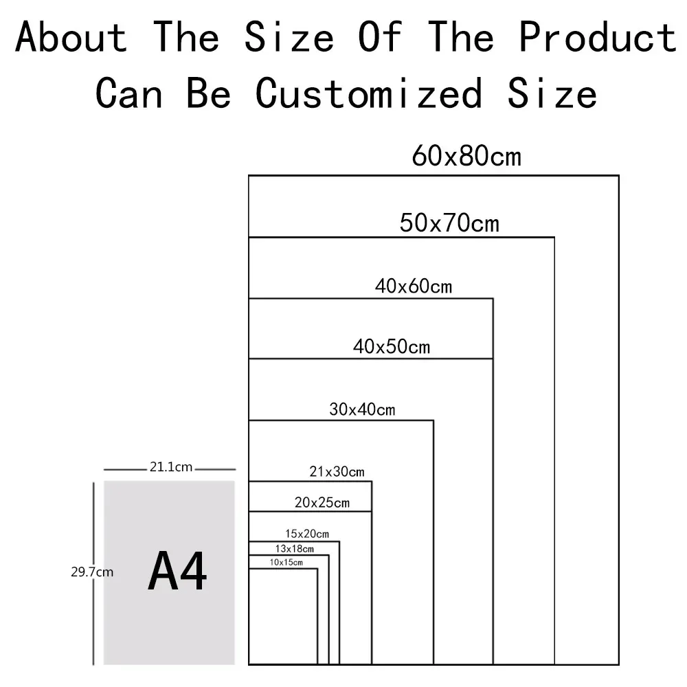 | Size (Inch) | 13x18cm No Frame, 20x25cm No Frame, A4 21x30cm No Frame, 30x40cm No Frame, A3 30x42cm No Frame, 40x50cm No Frame, 40x60cm No Frame, 50x70cm No Frame |