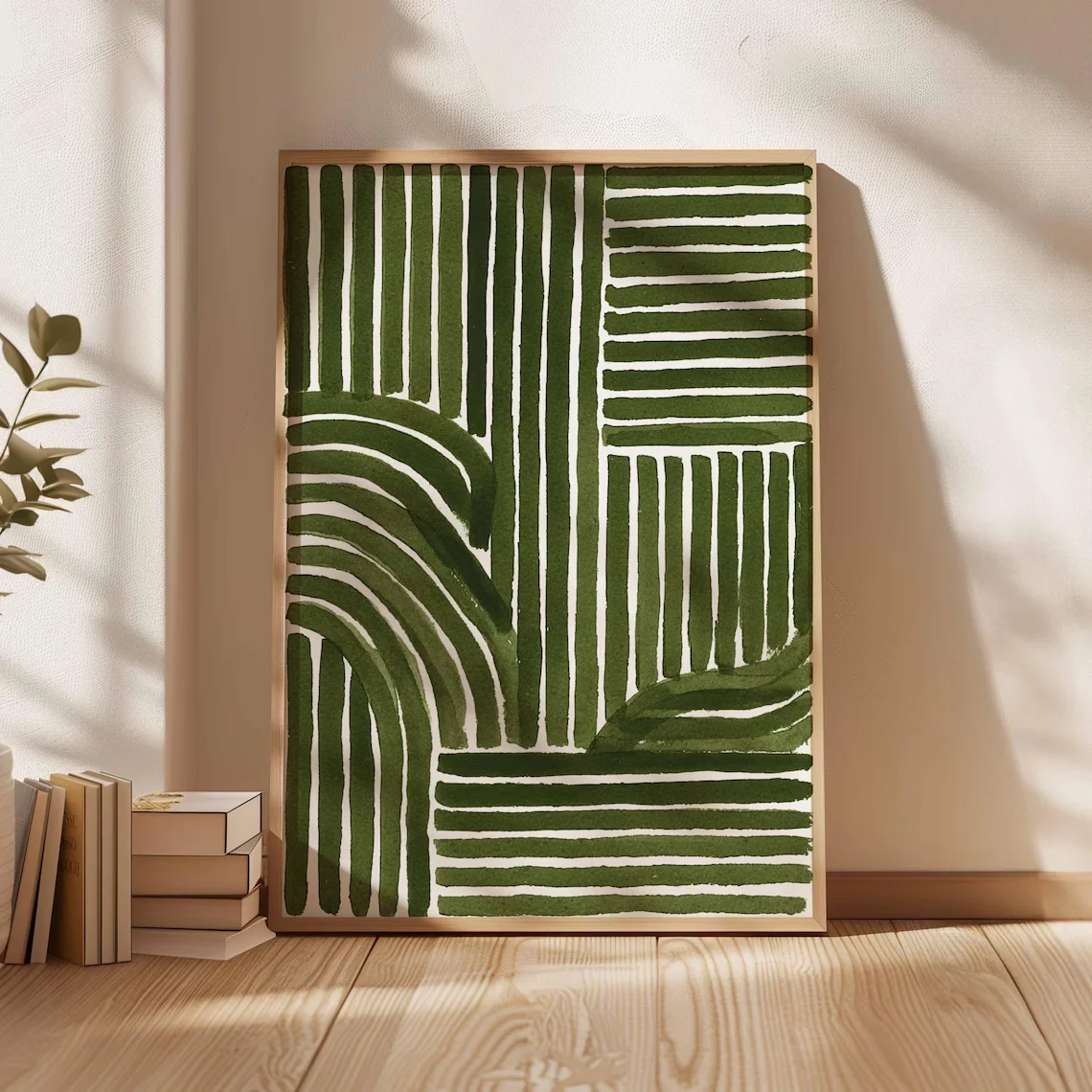 Green Abstract Line Art Print – Modern Minimalist Geometric Poster, Contemporary Wall Decor, Mid Century Inspired Artwork