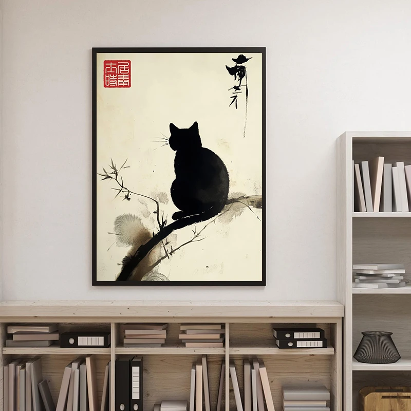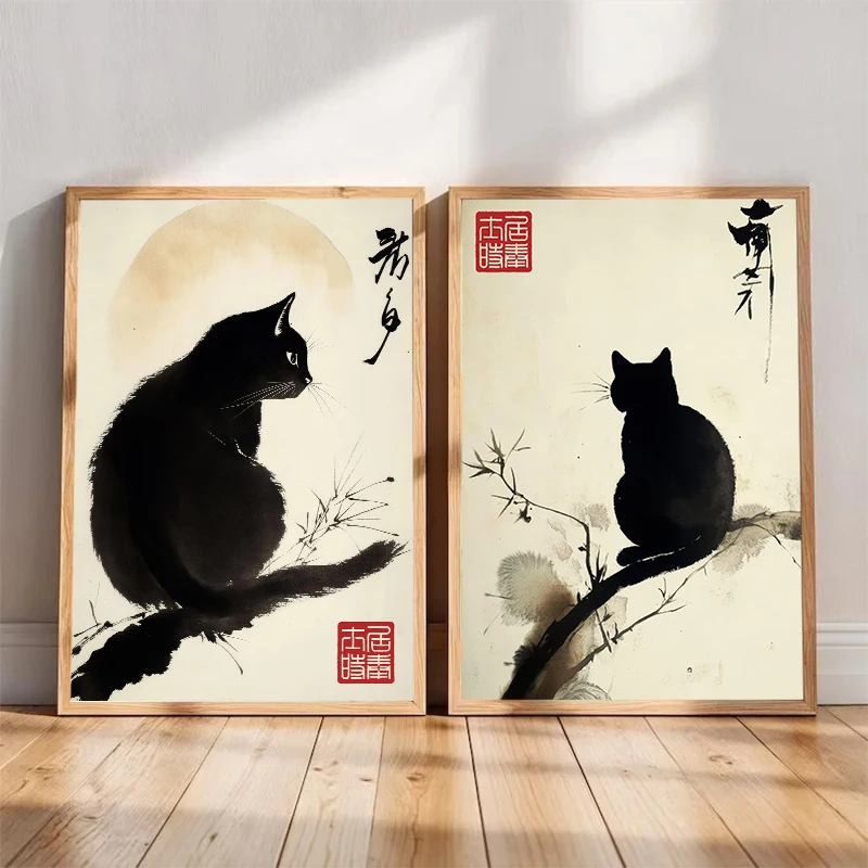 Be the first to review “Minimalist Japanese Cat Poster Black Cat By Matsumoto Hoji, Sumi-E Woodblock Painting Canvas Print Wall Art Home Decor Cuadros”