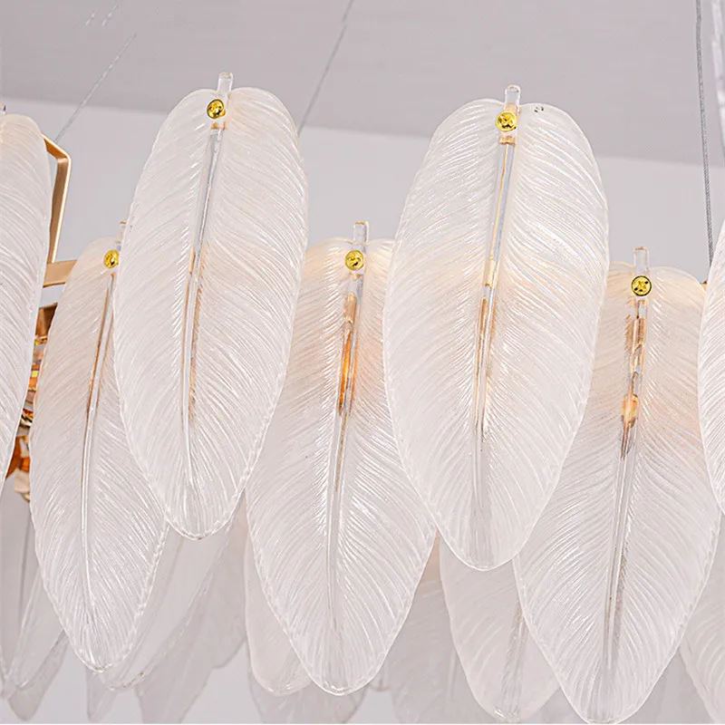 Modern Luxury Villa Led Chandelier Feather Glass Gold Metal For Living Room Bedroom Pendant Lights Home Decor Lighting Fixture