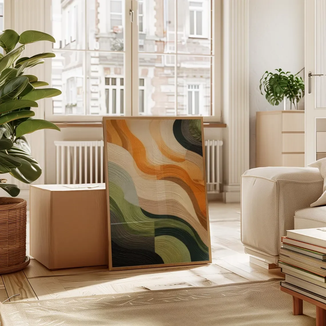 “Wavy Earth Tone Textured Abstract Wall Print Decor – Warm Boho Art for Bedroom Accent, Living Room Wall Decor, or Minimalist Ho